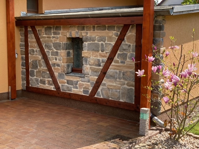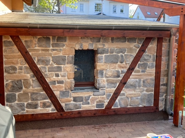 - Verfugen mit Trasszementmörtel oder halbtrockenem Fugenmörtel