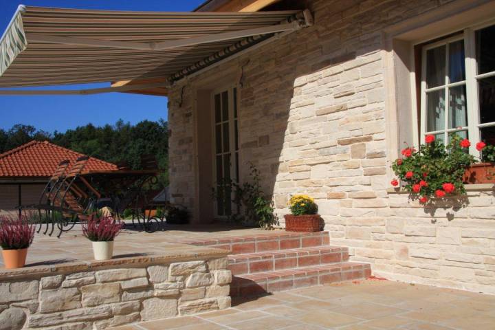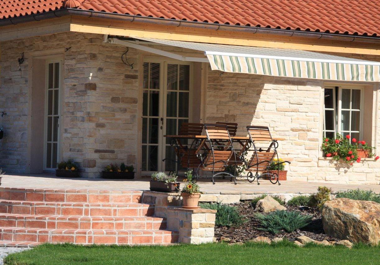 - Außen: Hausfassade, Sockel, Terrassenwände